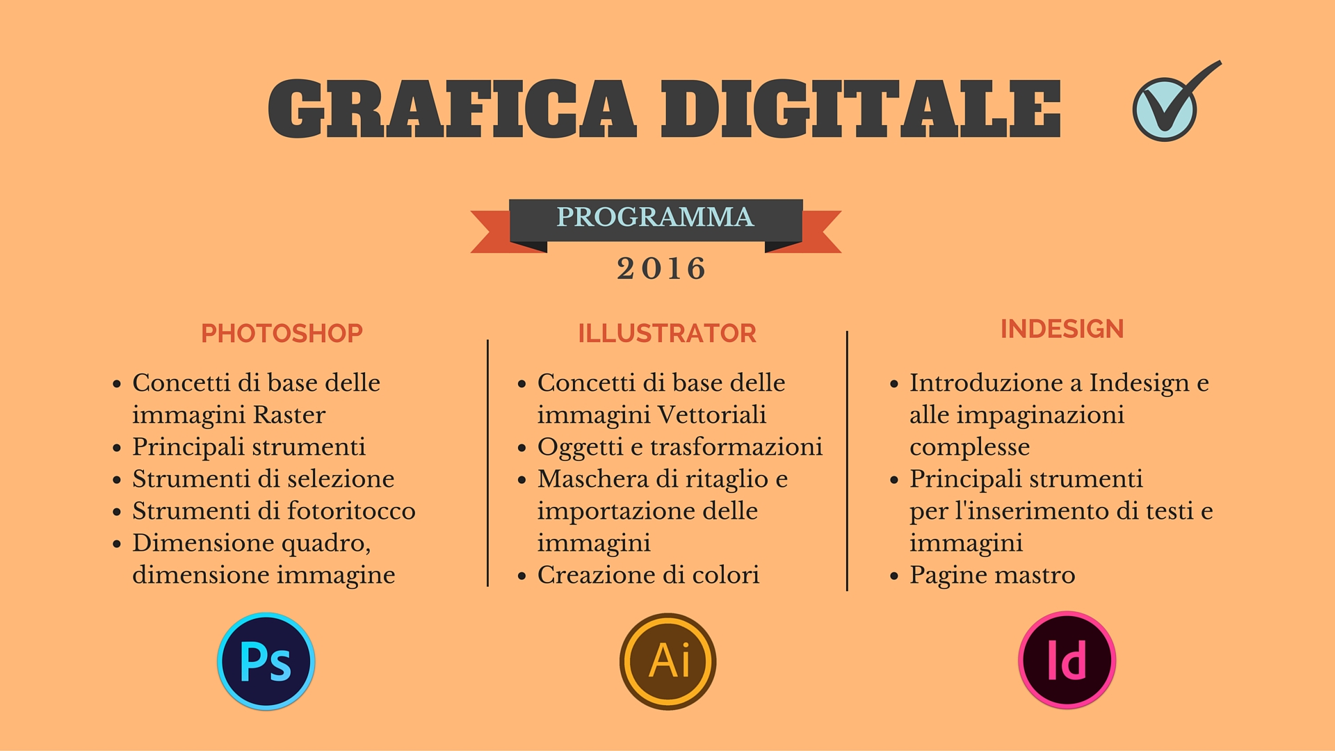 Di seguito il programma dettagliato del corso di GRAFICA DIGITALE, in partenza nelle sedi di Como e Lomazzo.